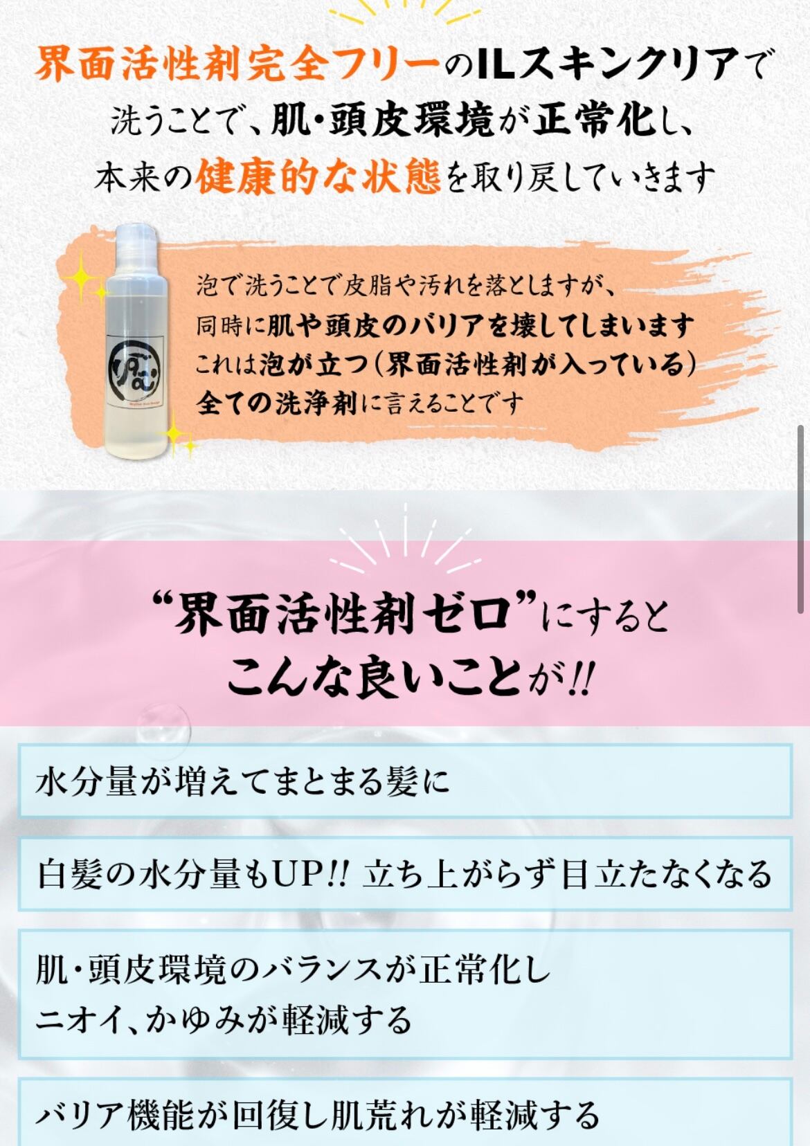 シャンプーの代わりに頭と髪を洗う際に、デケミおきよめ、を泡ポンプで6〜12プッシュほど出して地肌を優しく指の腹で洗い、そのあと、そのままILスキンクリアを適量塗布するようにつけて、少し置いてから洗い流すとサラサラになります。